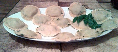 Gorgonzola-Rucola-Ravioli in Basilikum-Sahne-Sauce