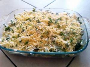 Mit den Käse bestreuen und ab in den Ofen bei 180 Grad ca 30 Minuten backen.